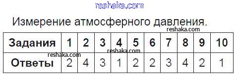 Решака - онлайн ответы Физика Чеботарева за 7 класс Тесты ФГОС 2017 - Изменение атмосферного давления