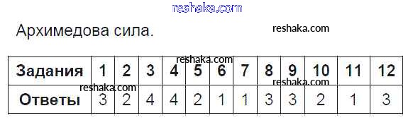 Решака - онлайн ответы Физика Чеботарева за 7 класс Тесты ФГОС 2017 - Архимедова сила