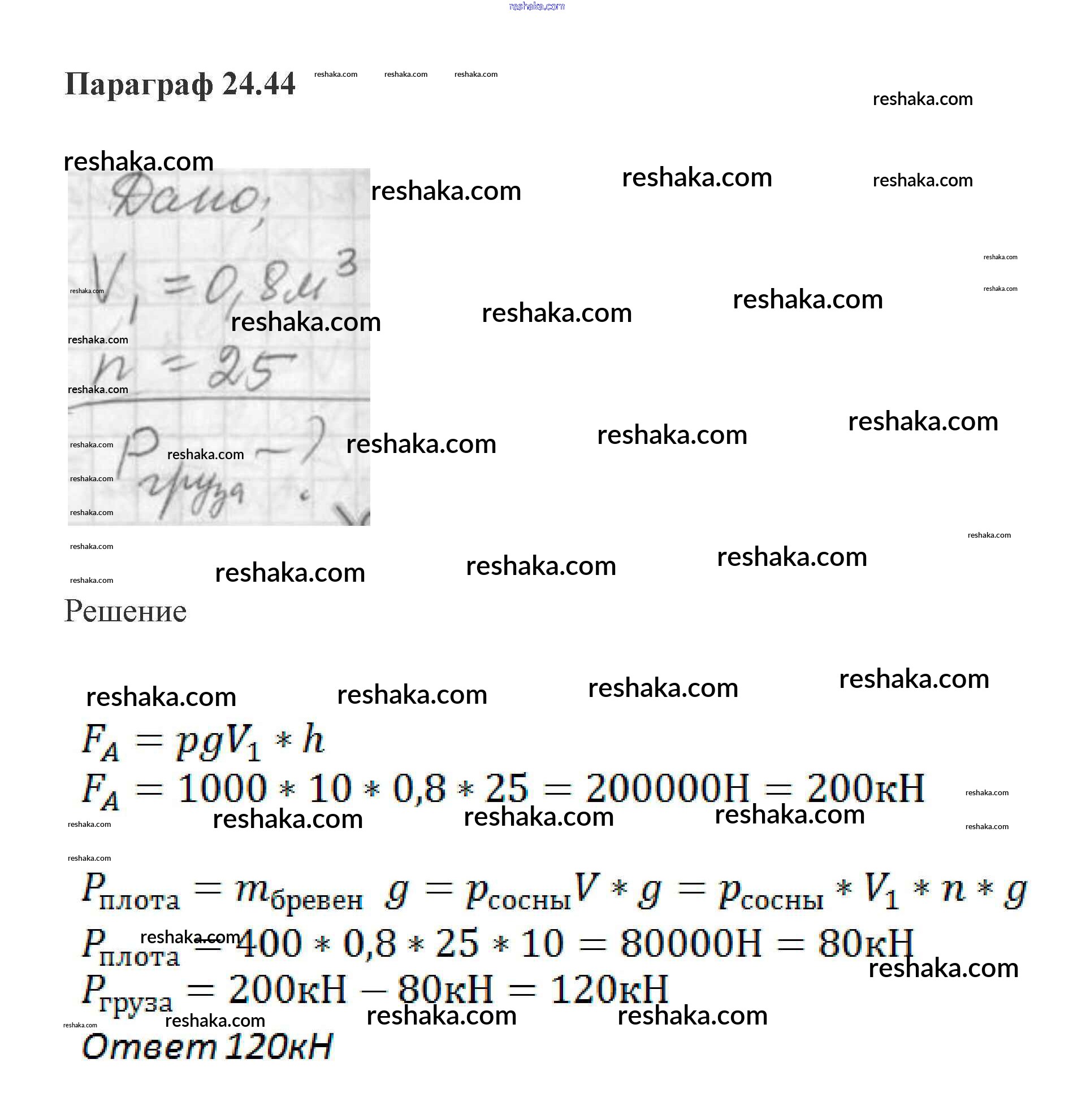 Решака - онлайн ответы Физика Генденштейн, Кирик за 7 класс Задачник ФГОС 2015 - 44
