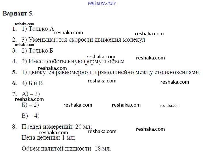 Решака - онлайн ответы Физика Громцева за 7 класс Контрольные и самостоятельные работы ФГОС 2020 - Вар. 5