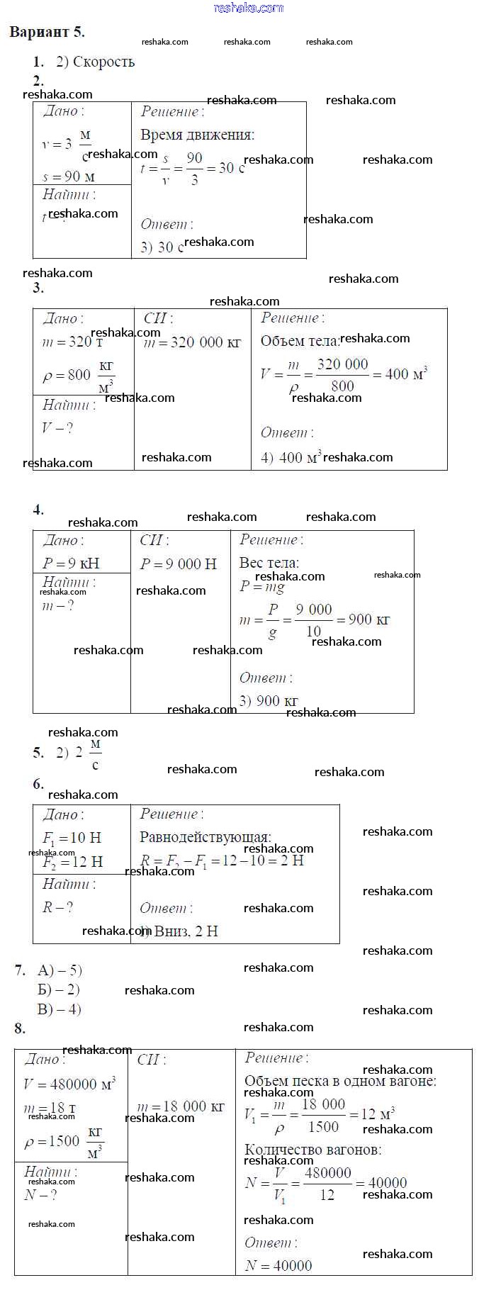 Решака - онлайн ответы Физика Громцева за 7 класс Контрольные и самостоятельные работы ФГОС 2020 - Вар. 5