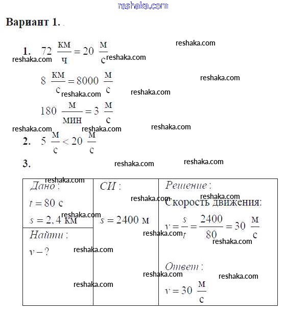 Решака - онлайн ответы Физика Громцева за 7 класс Контрольные и самостоятельные работы ФГОС 2020 - Вар. 1