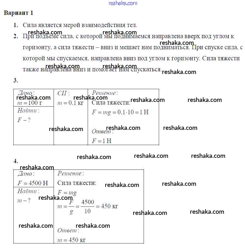 Решака - онлайн ответы Физика Громцева за 7 класс Контрольные и самостоятельные работы ФГОС 2020 - Вар. 1
