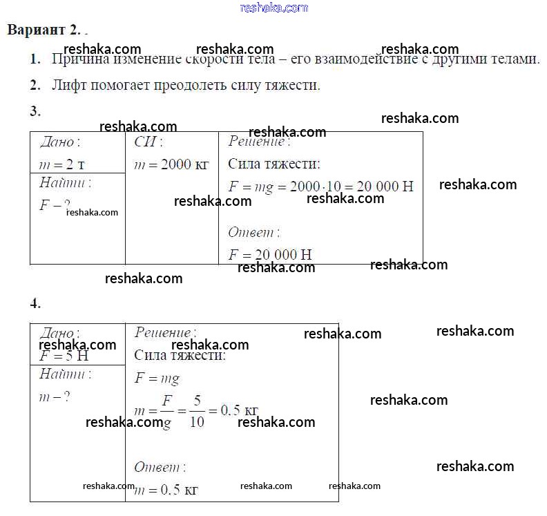 Решака - онлайн ответы Физика Громцева за 7 класс Контрольные и самостоятельные работы ФГОС 2020 - Вар. 2