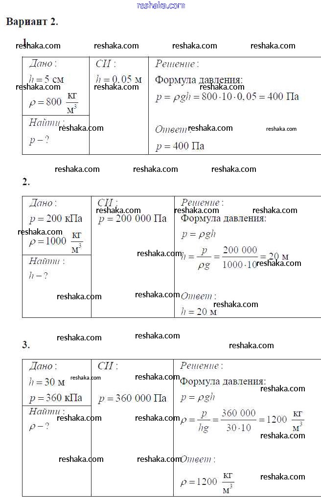 самостоятельная работа / ср №29. расчет давления жидкости на дно и стенки сосуда / вар. 2