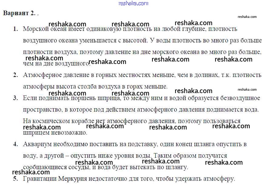 самостоятельная работа / ср №31. вес воздуха. атмосферное давление / вар. 2