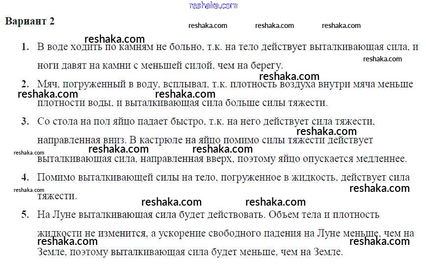 Решака - онлайн ответы Физика Громцева за 7 класс Контрольные и самостоятельные работы ФГОС 2020 - Вар. 2