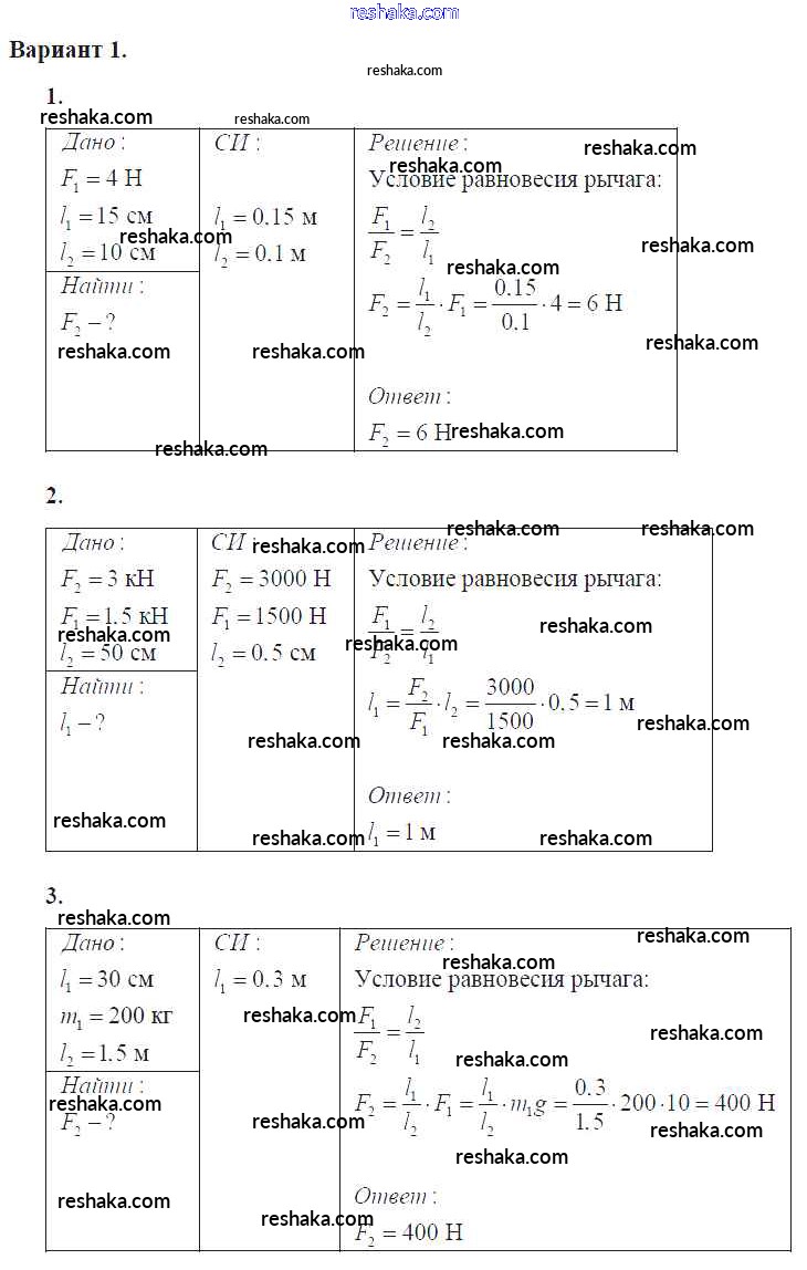 самостоятельная работа / ср №44. рычаг. равновесие сил на рычаге. момент силы / вар. 1