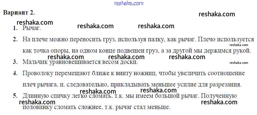 Решака - онлайн ответы Физика Громцева за 7 класс Контрольные и самостоятельные работы ФГОС 2020 - Вар. 2