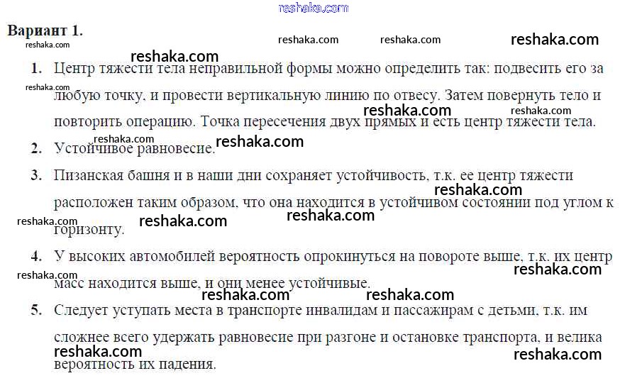 Решака - онлайн ответы Физика Громцева за 7 класс Контрольные и самостоятельные работы ФГОС 2020 - Вар. 1