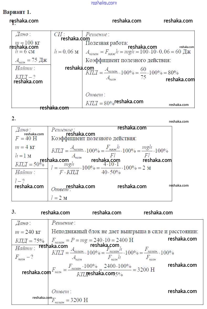 самостоятельная работа / ср №48. коэффициент полезного действия механизма / вар. 1
