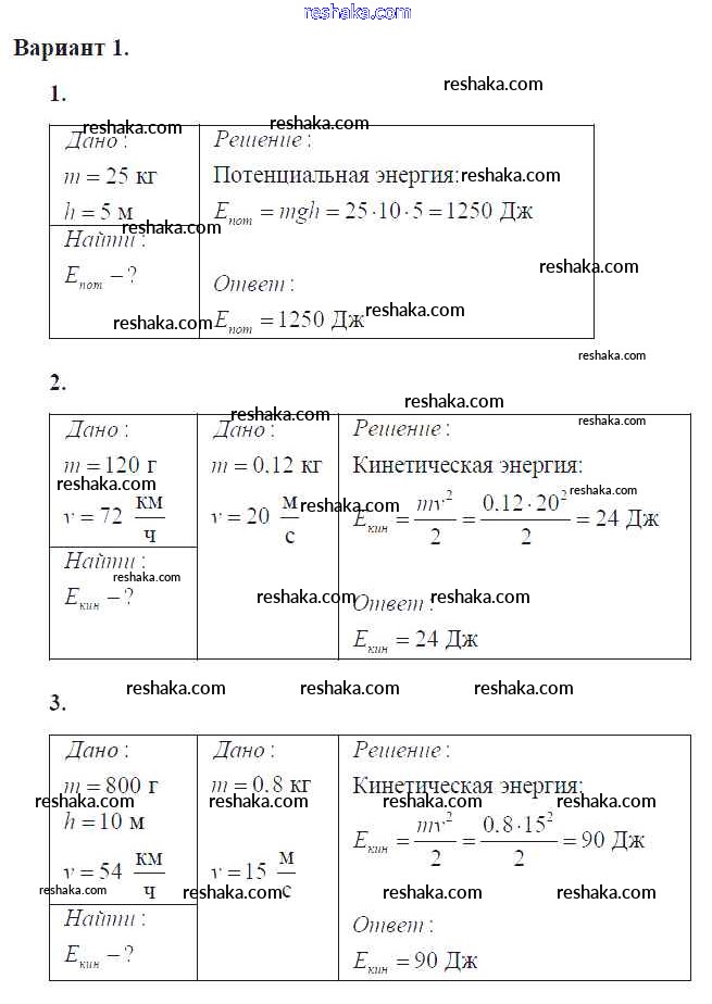 самостоятельная работа / ср №50. виды механической энергии / вар. 1