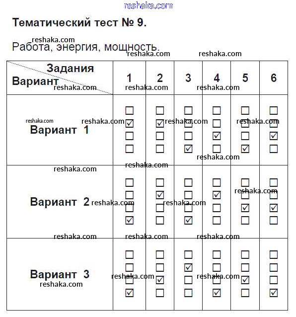Решака - онлайн ответы Физика Ханнанов, Ханнанова за 7 класс Тесты ФГОС 2017 - Тематический тест-9