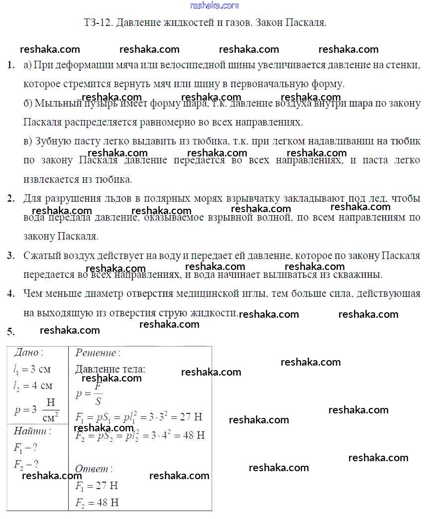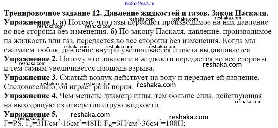 Решака - онлайн ответы Физика Марон за 7 класс Дидактические материалы ФГОС 2019 - Задание №12. Давление жидкостей и газов. Закон Паскаля