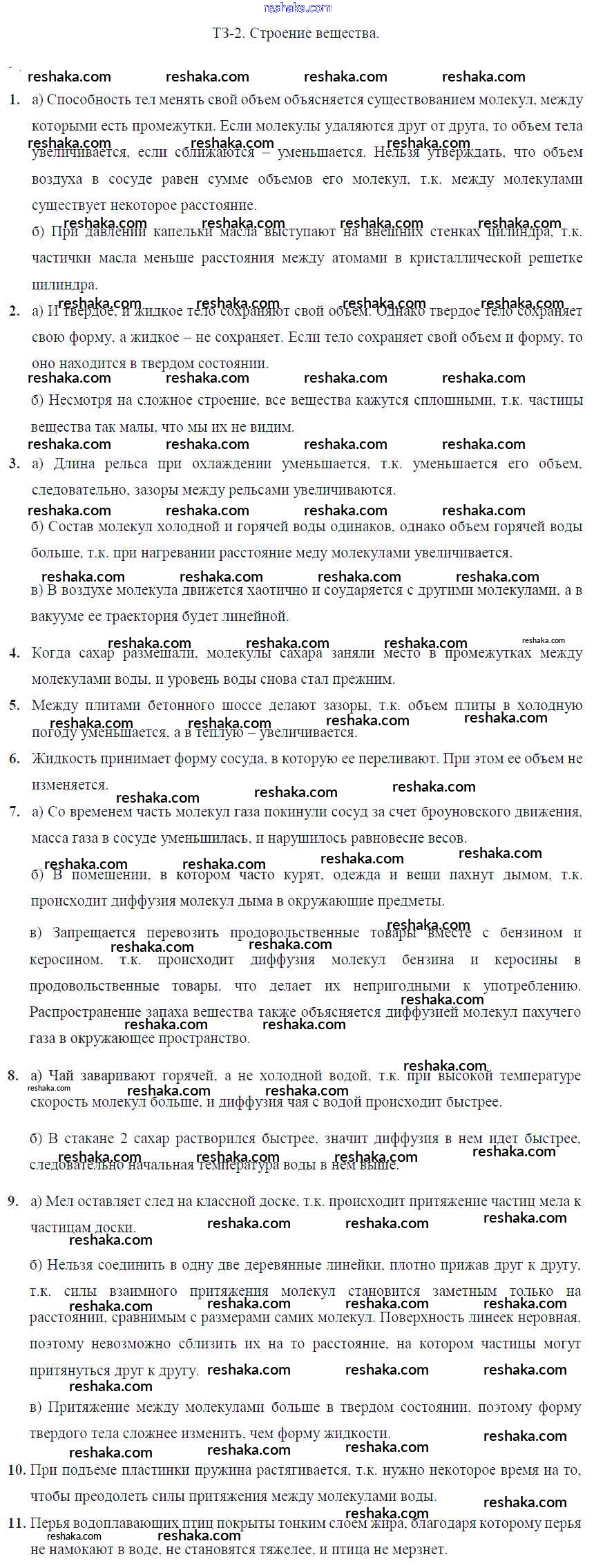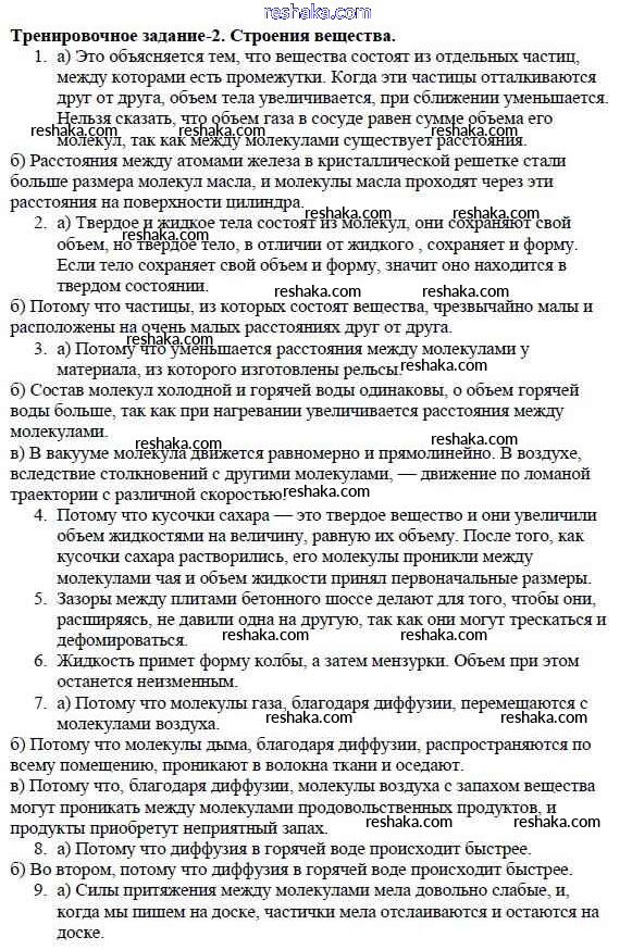 Решака - онлайн ответы Физика Марон за 7 класс Дидактические материалы ФГОС 2019 - Задание №2. Строение вещества