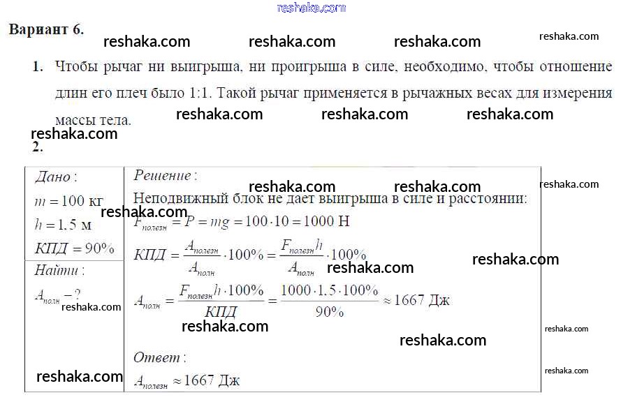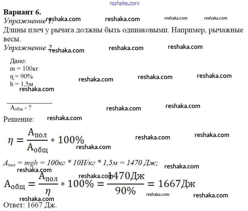 Решака - онлайн ответы Физика Марон за 7 класс Дидактические материалы ФГОС 2019 - Вариант №6