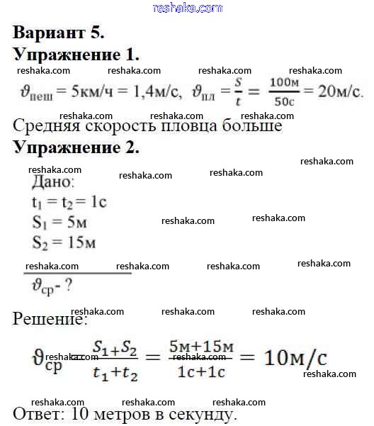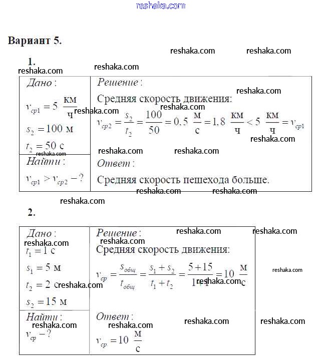 Решака - онлайн ответы Физика Марон за 7 класс Дидактические материалы ФГОС 2019 - Вариант №5