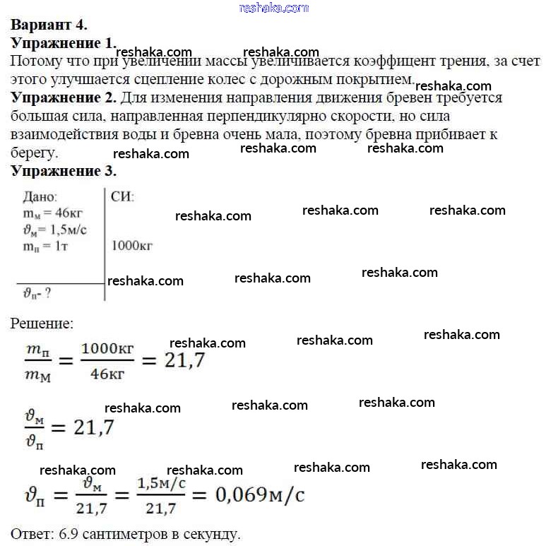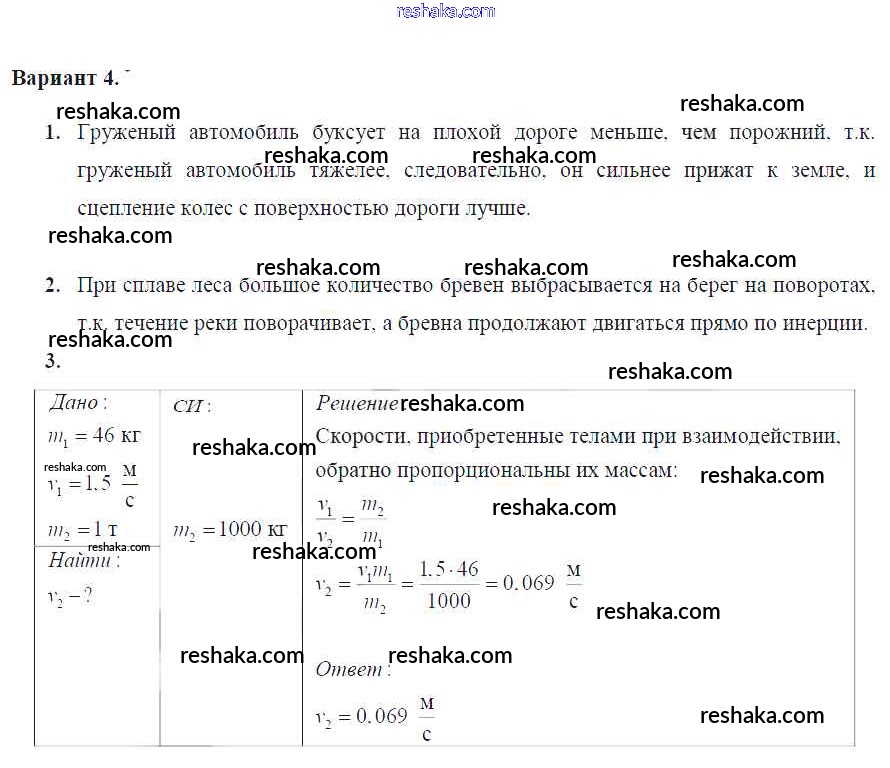 Решака - онлайн ответы Физика Марон за 7 класс Дидактические материалы ФГОС 2019 - Вариант №4