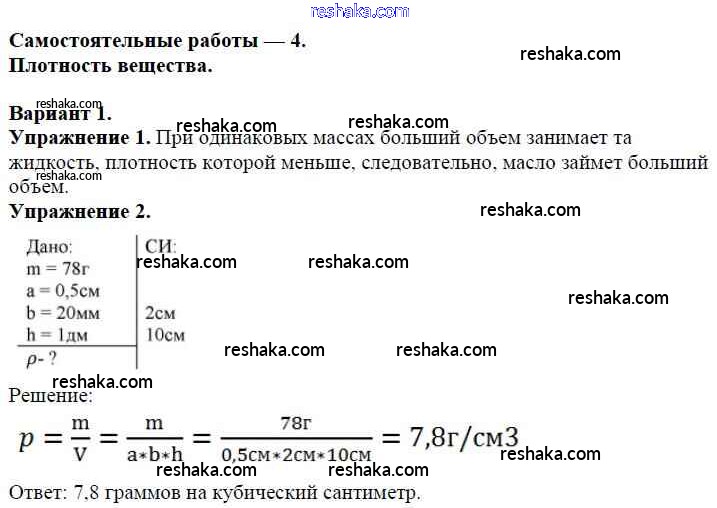 Представляем вам сборники по Физике, с готовыми ответами к Дидактическим материалам Марон школьной программы для учеников седьмой класса. Это не просто гдз с ответом, а с подсказками, как верно решить СР №-4. Плотность вещества Самостоятельные работы Вариант №1. Проверяй домашку с умом и получай высший балл!