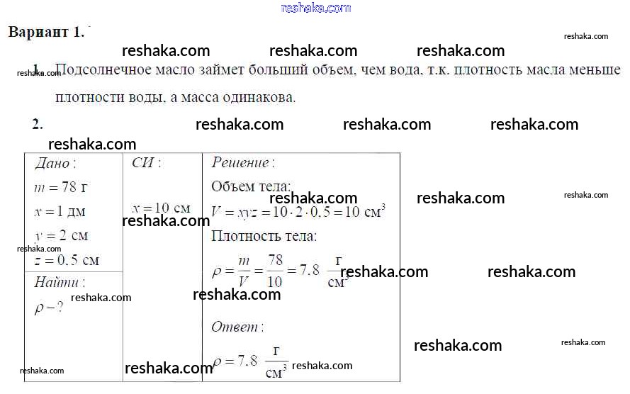 Решака - онлайн ответы Физика Марон за 7 класс Дидактические материалы ФГОС 2019 - Вариант №1