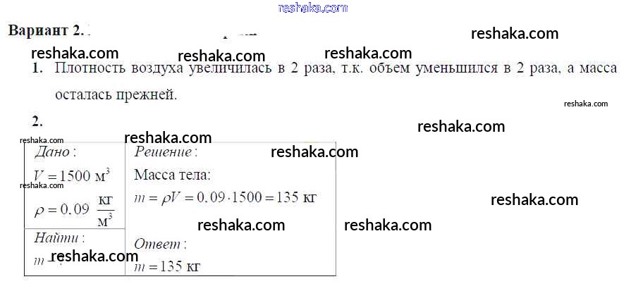 Решака - онлайн ответы Физика Марон за 7 класс Дидактические материалы ФГОС 2019 - Вариант №2