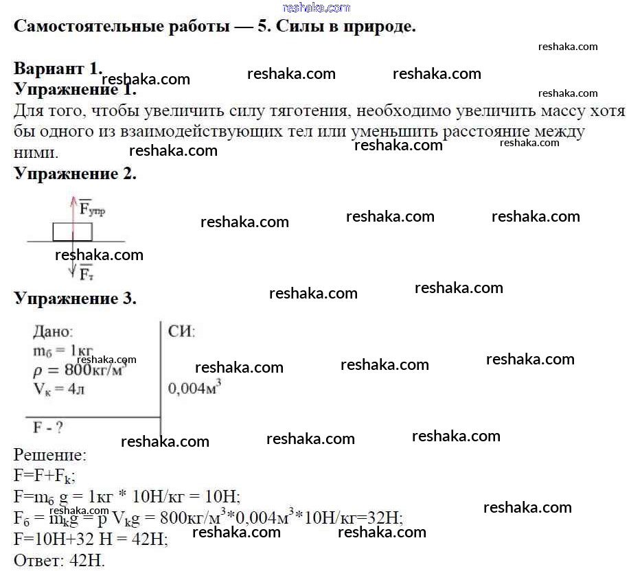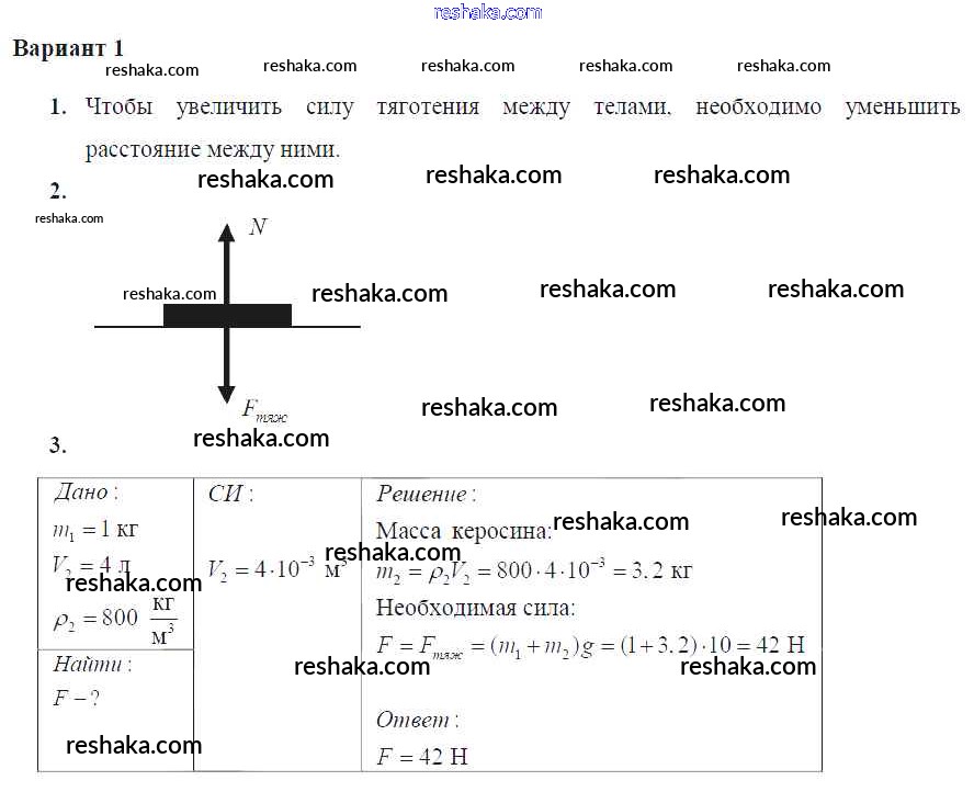 Решака - онлайн ответы Физика Марон за 7 класс Дидактические материалы ФГОС 2019 - Вариант №1