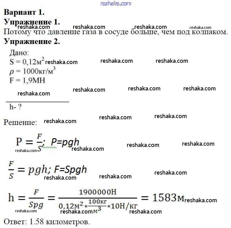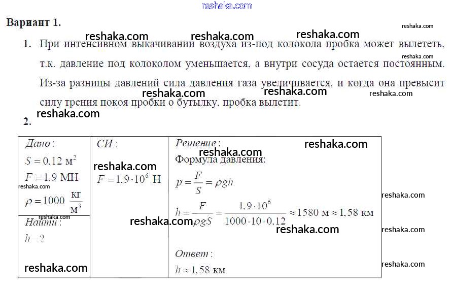 Решака - онлайн ответы Физика Марон за 7 класс Дидактические материалы ФГОС 2019 - Вариант №1