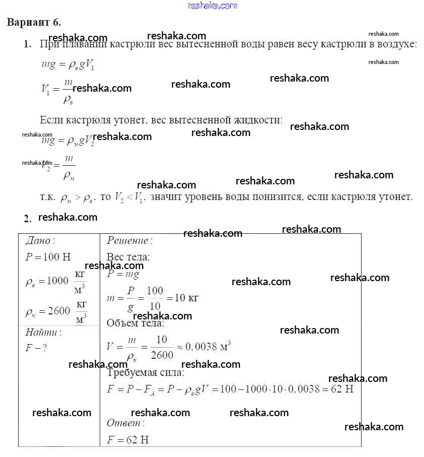 Решака - онлайн ответы Физика Марон за 7 класс Дидактические материалы ФГОС 2019 - Вариант №6