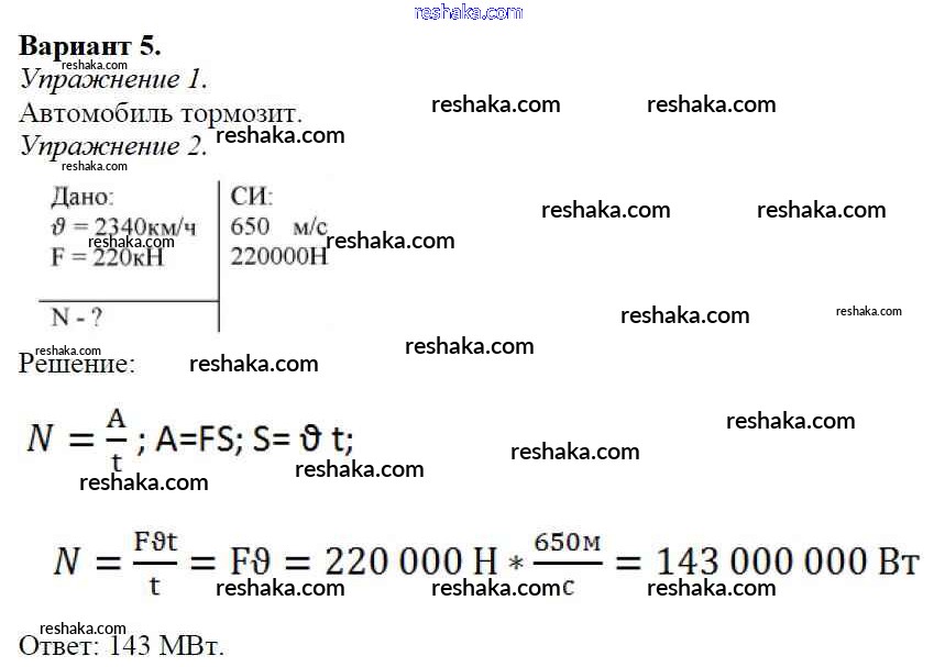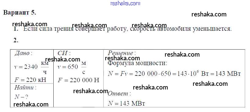Решака - онлайн ответы Физика Марон за 7 класс Дидактические материалы ФГОС 2019 - Вариант №5