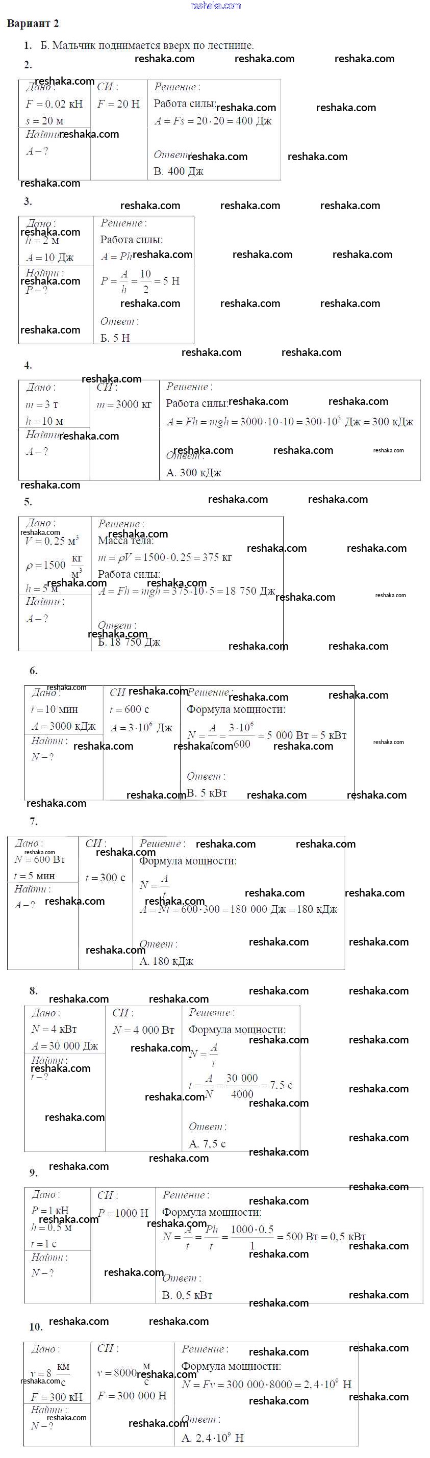 Решака - онлайн ответы Физика Марон за 7 класс Дидактические материалы ФГОС 2019 - Вариант №2