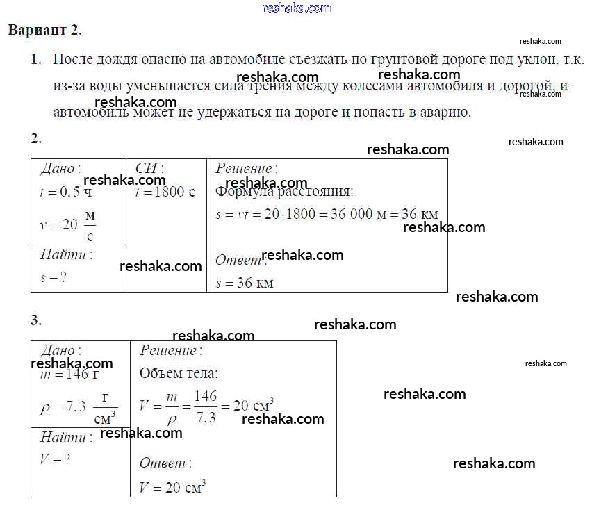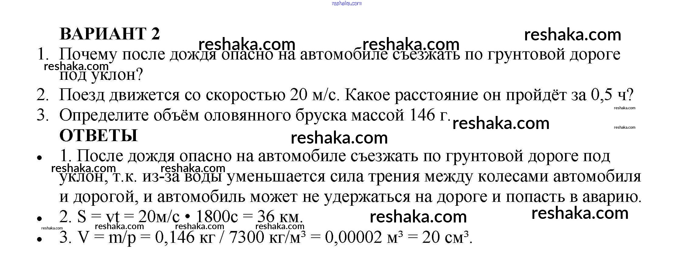 Решака - онлайн ответы Физика Марон за 7 класс Самостоятельные и контрольные работы ФГОС 2016 - Вариант №2