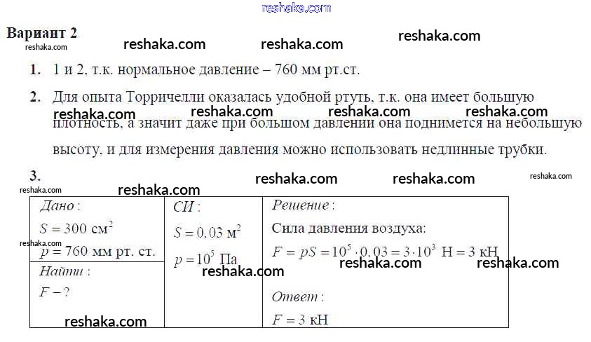 Решака - онлайн ответы Физика Марон за 7 класс Самостоятельные и контрольные работы ФГОС 2016 - Вариант №2