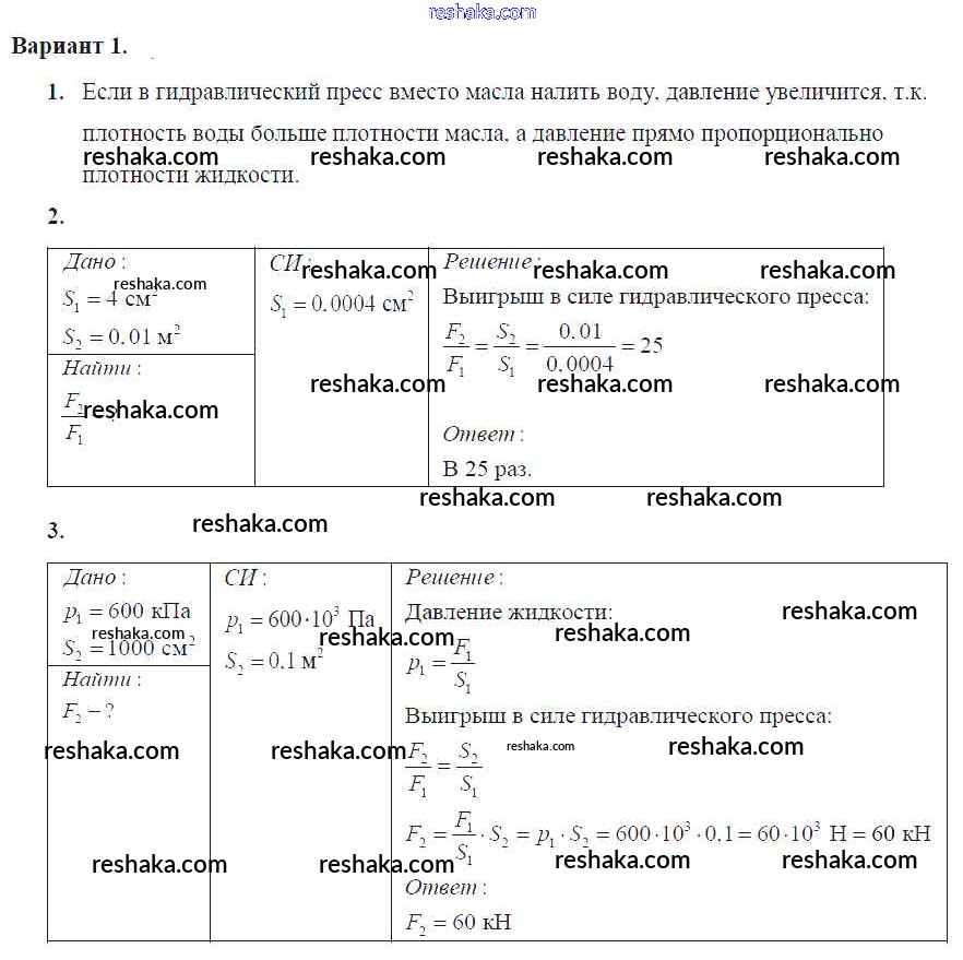 Решака - онлайн ответы Физика Марон за 7 класс Самостоятельные и контрольные работы ФГОС 2016 - Вариант №1