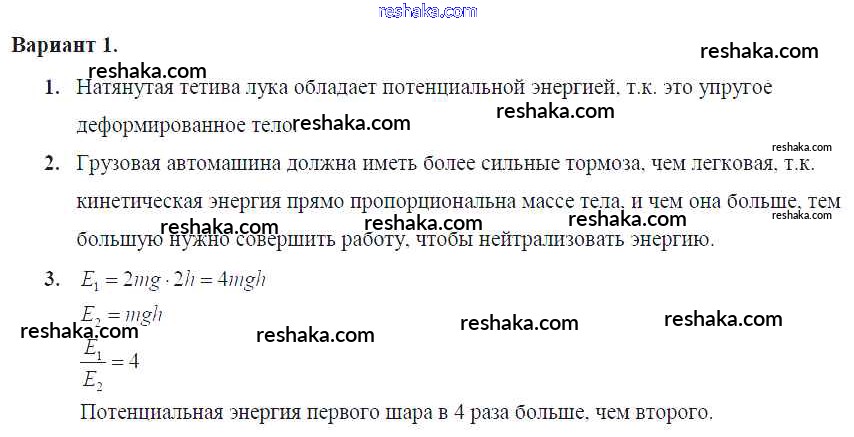 самостоятельная работа / ср-№67. потенциальная и кинетическая энергия / вариант №1