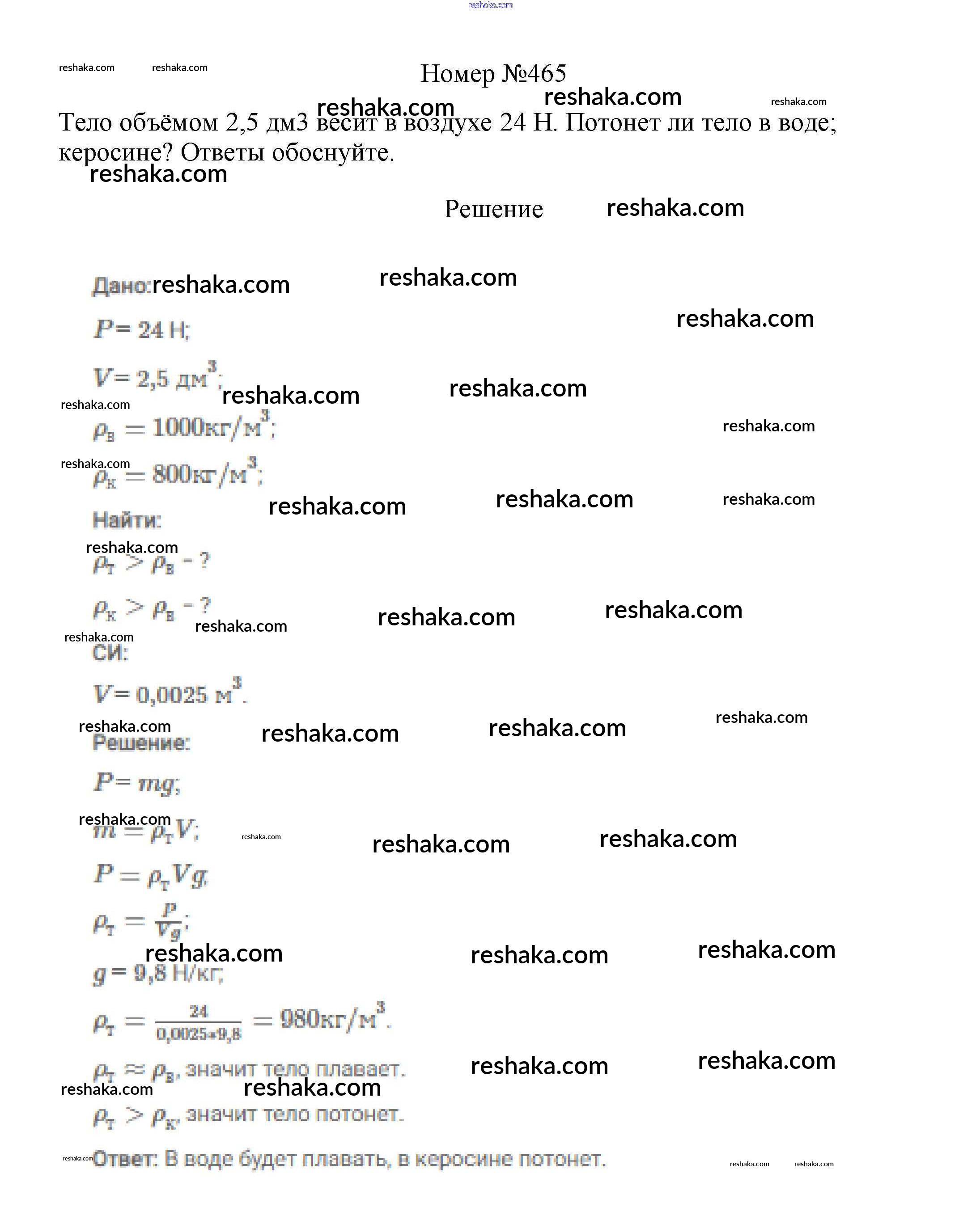 Решака - онлайн ответы Физика Марон, Позойский за 7-9 класс Сборник вопросов и задач ФГОС 2013 - 465