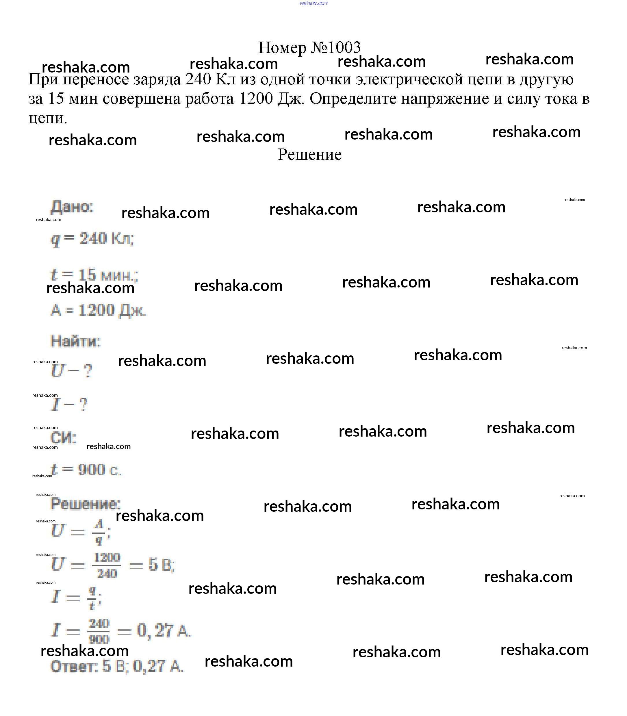 Решака - онлайн ответы Физика Марон, Позойский за 7-9 класс Сборник вопросов и задач ФГОС 2013 - 1003
