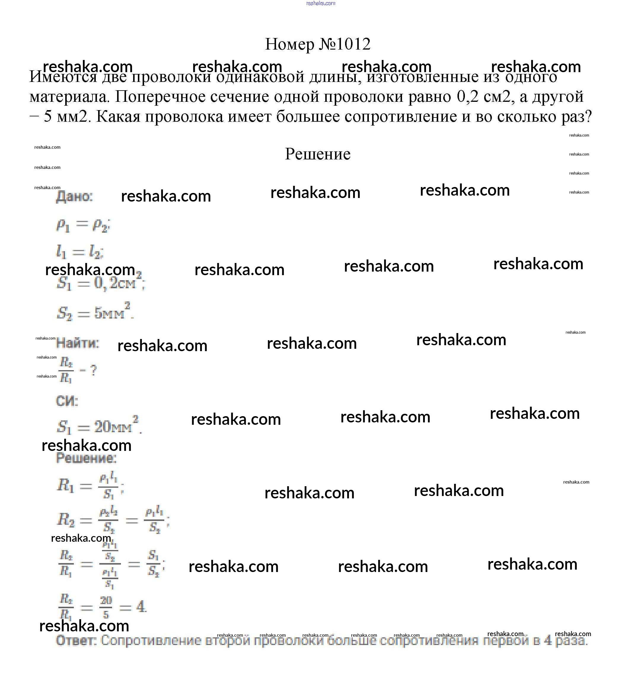 Решака - онлайн ответы Физика Марон, Позойский за 7-9 класс Сборник вопросов и задач ФГОС 2013 - 1012