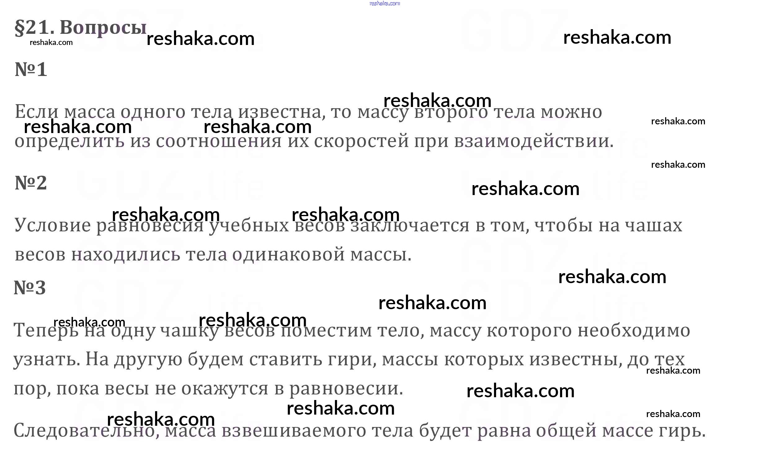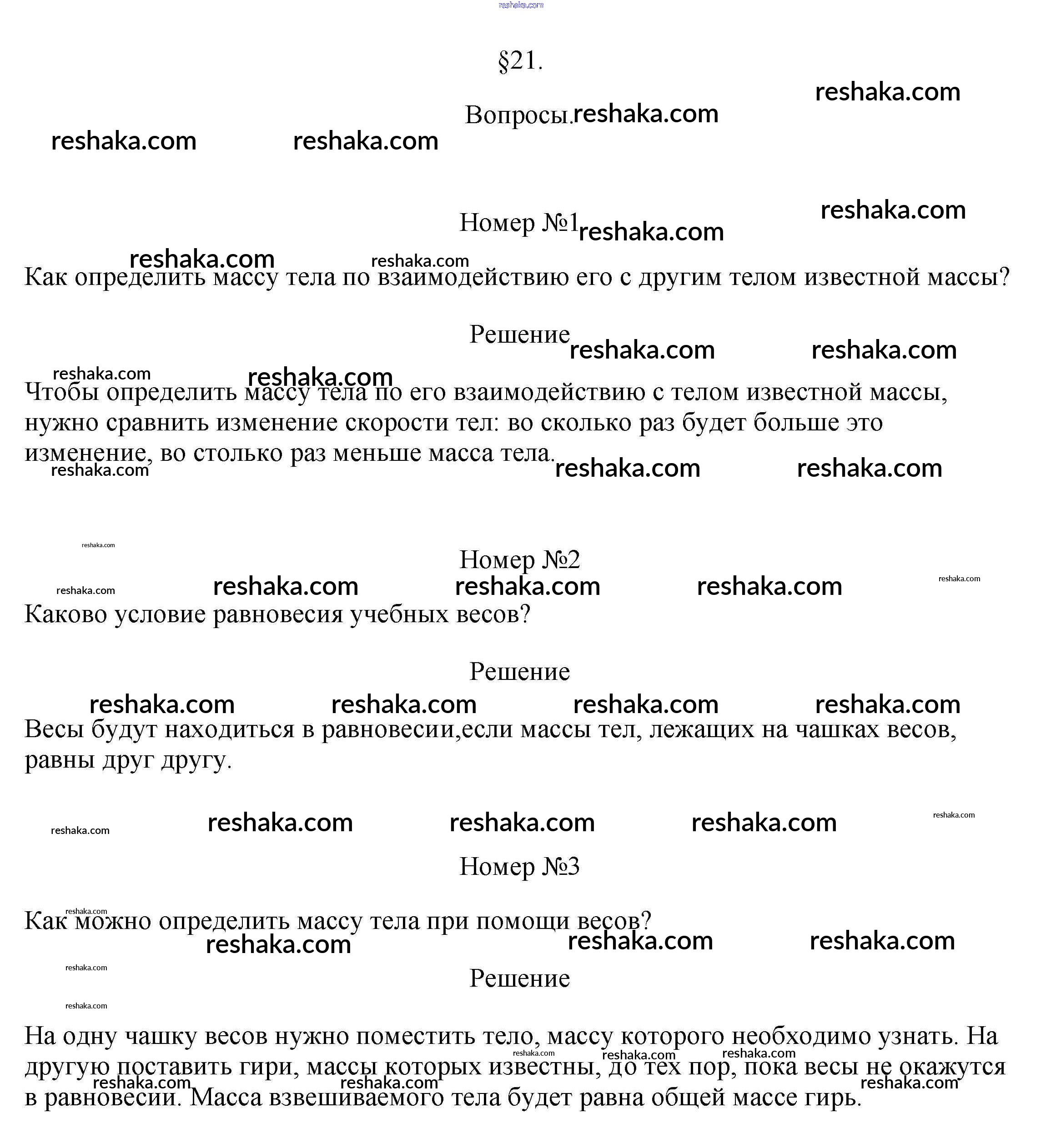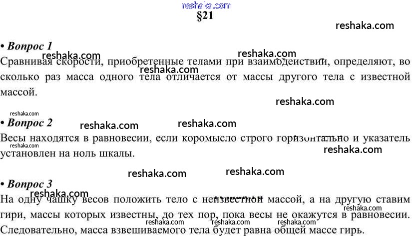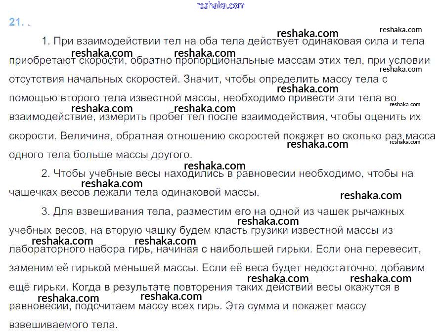 Решака - онлайн ответы Физика Перышкин за 7 класс Учебник ФГОС 2016 - §21