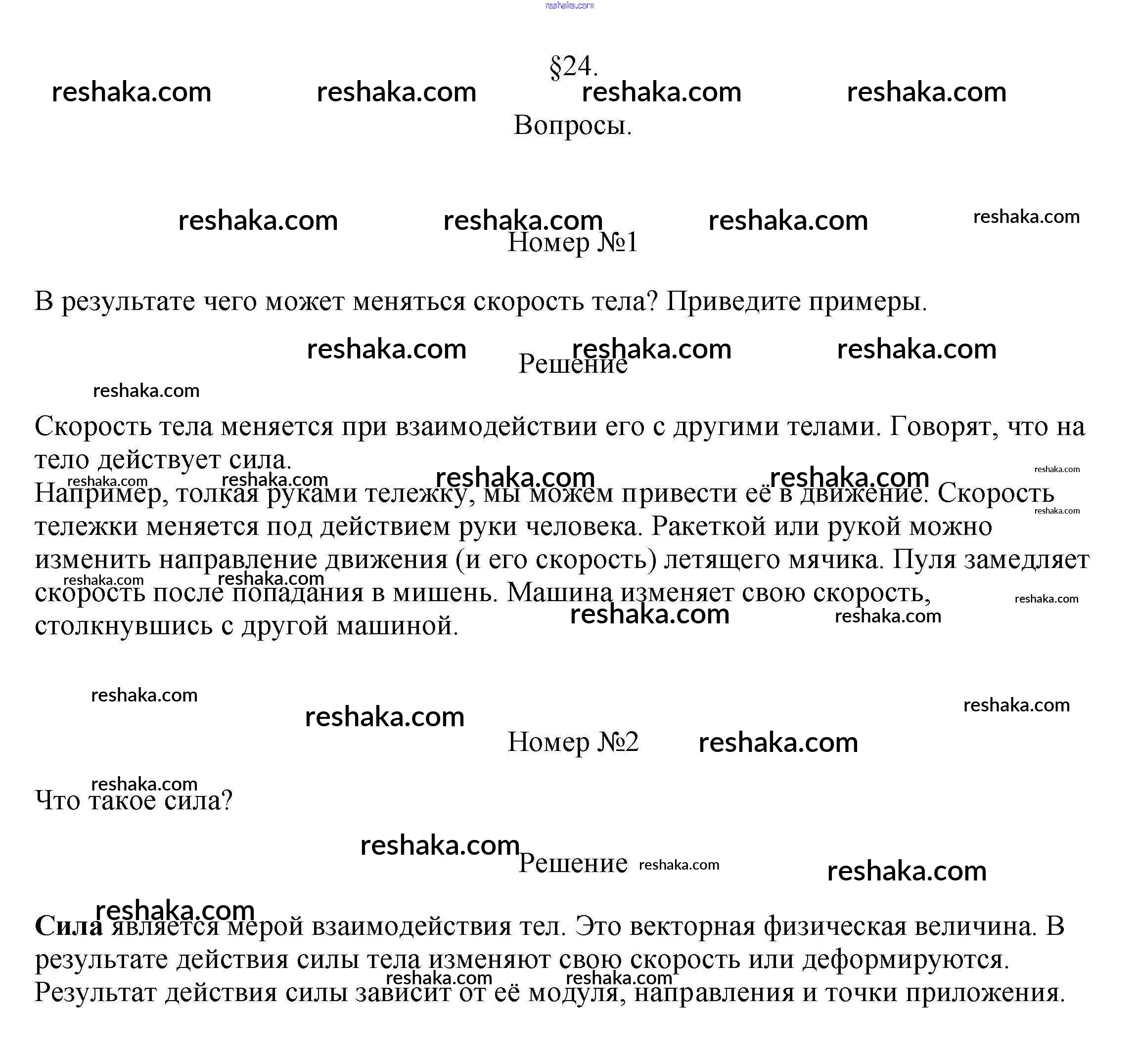 Решака - онлайн ответы Физика Перышкин за 7 класс Учебник ФГОС 2016 - §24