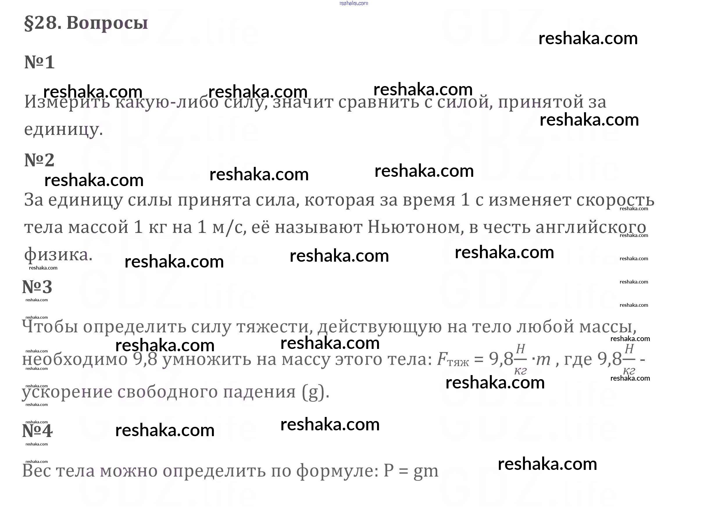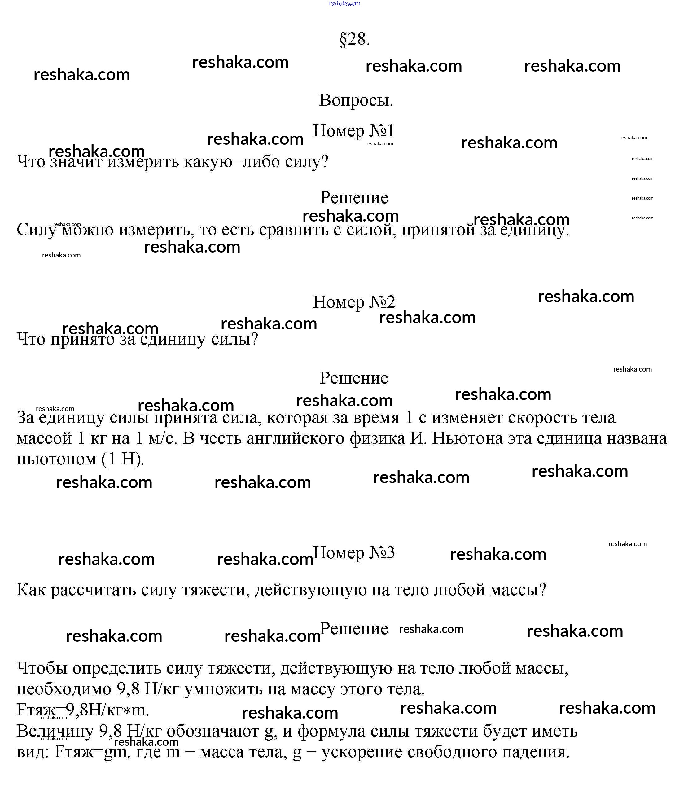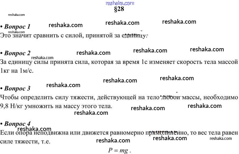 Решака - онлайн ответы Физика Перышкин за 7 класс Учебник ФГОС 2016 - §28