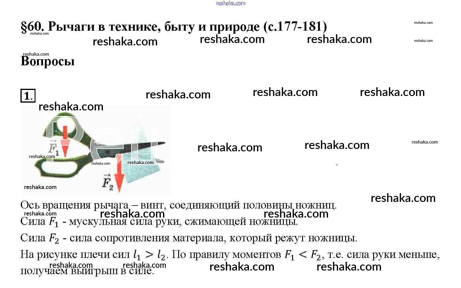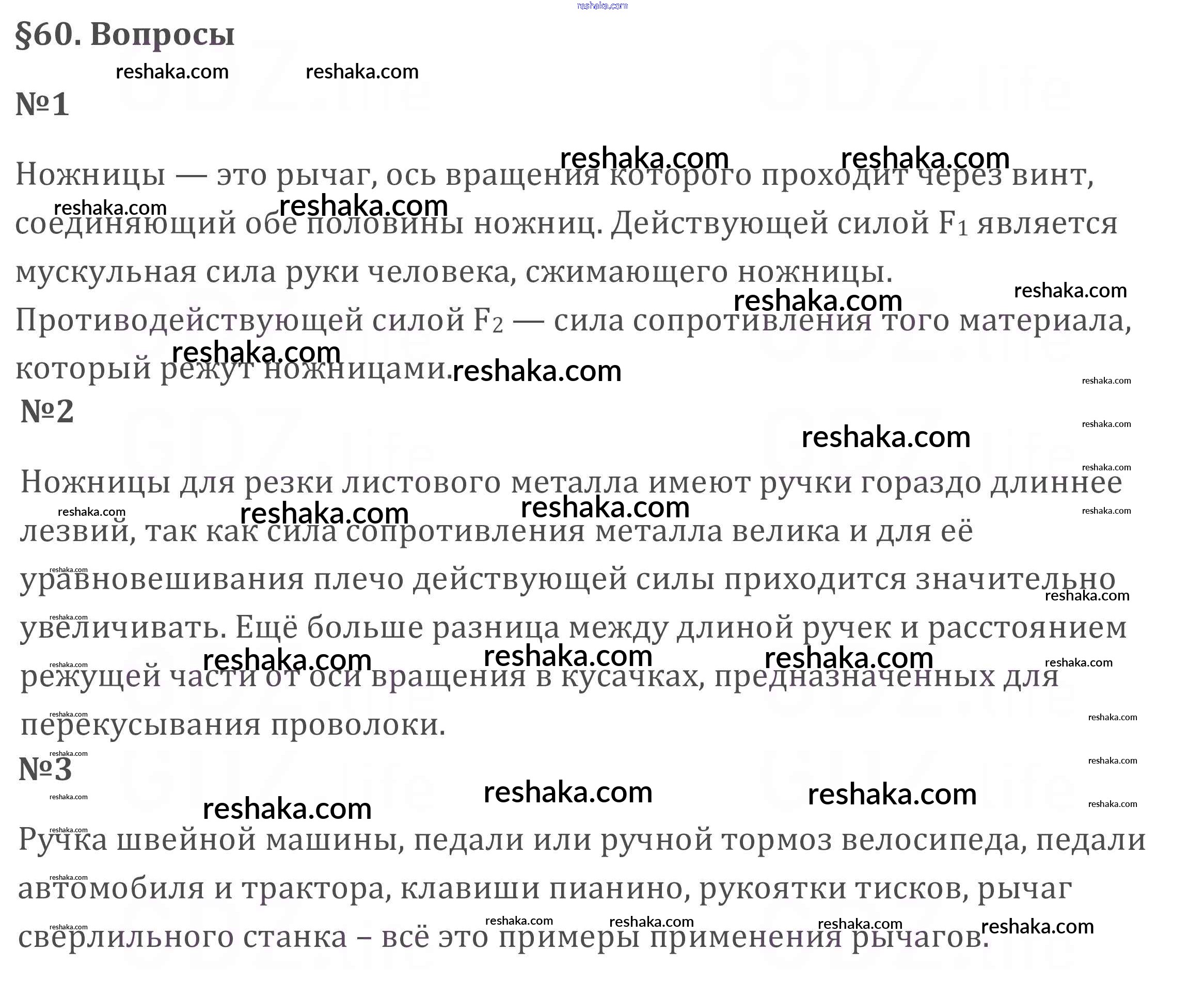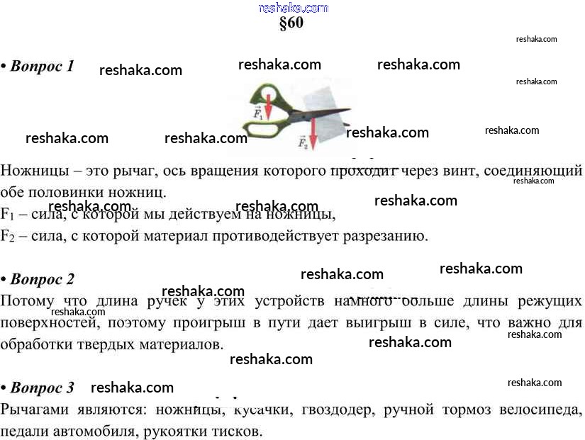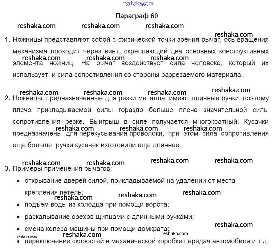 Решака - онлайн ответы Физика Перышкин за 7 класс Учебник ФГОС 2016 - §60