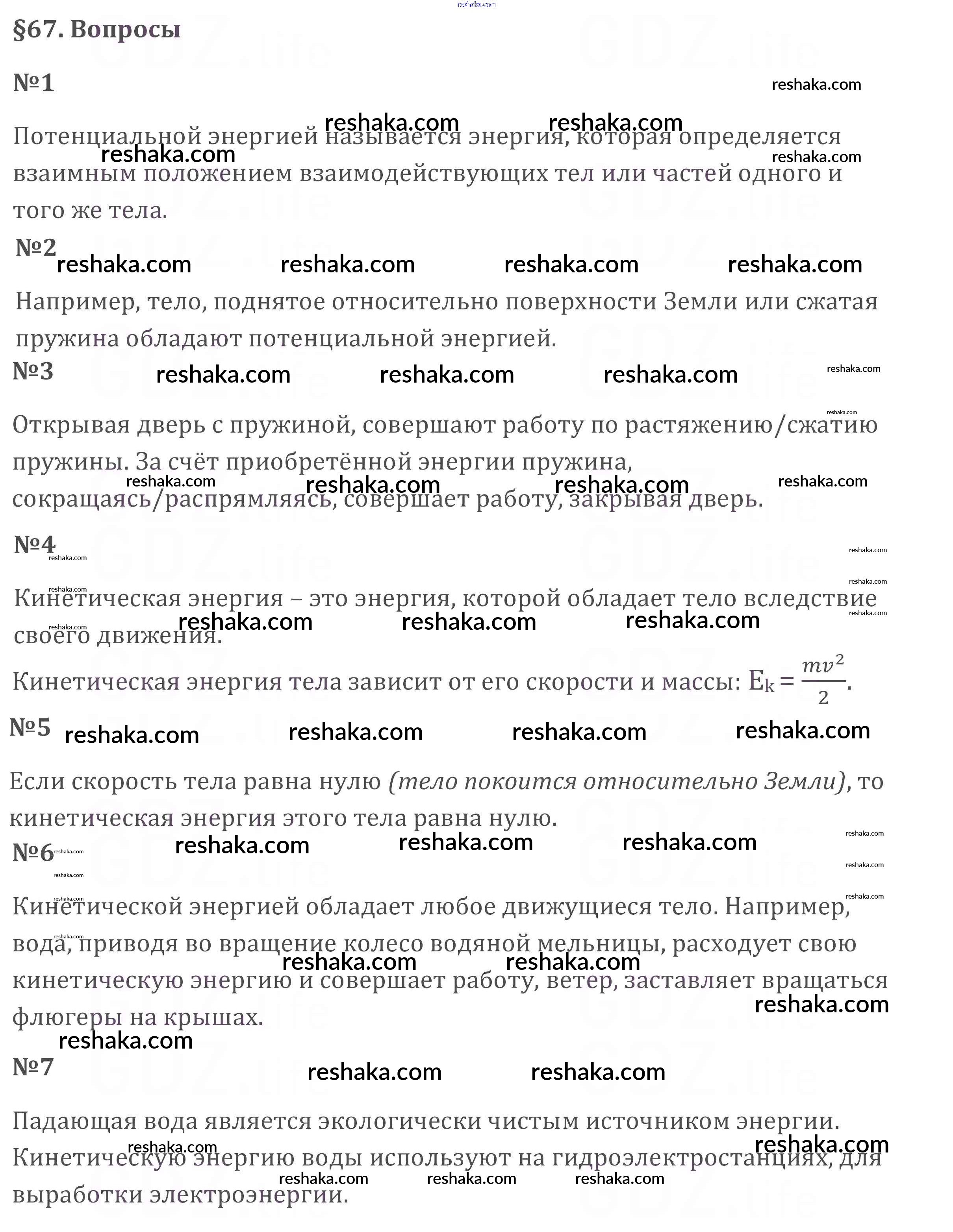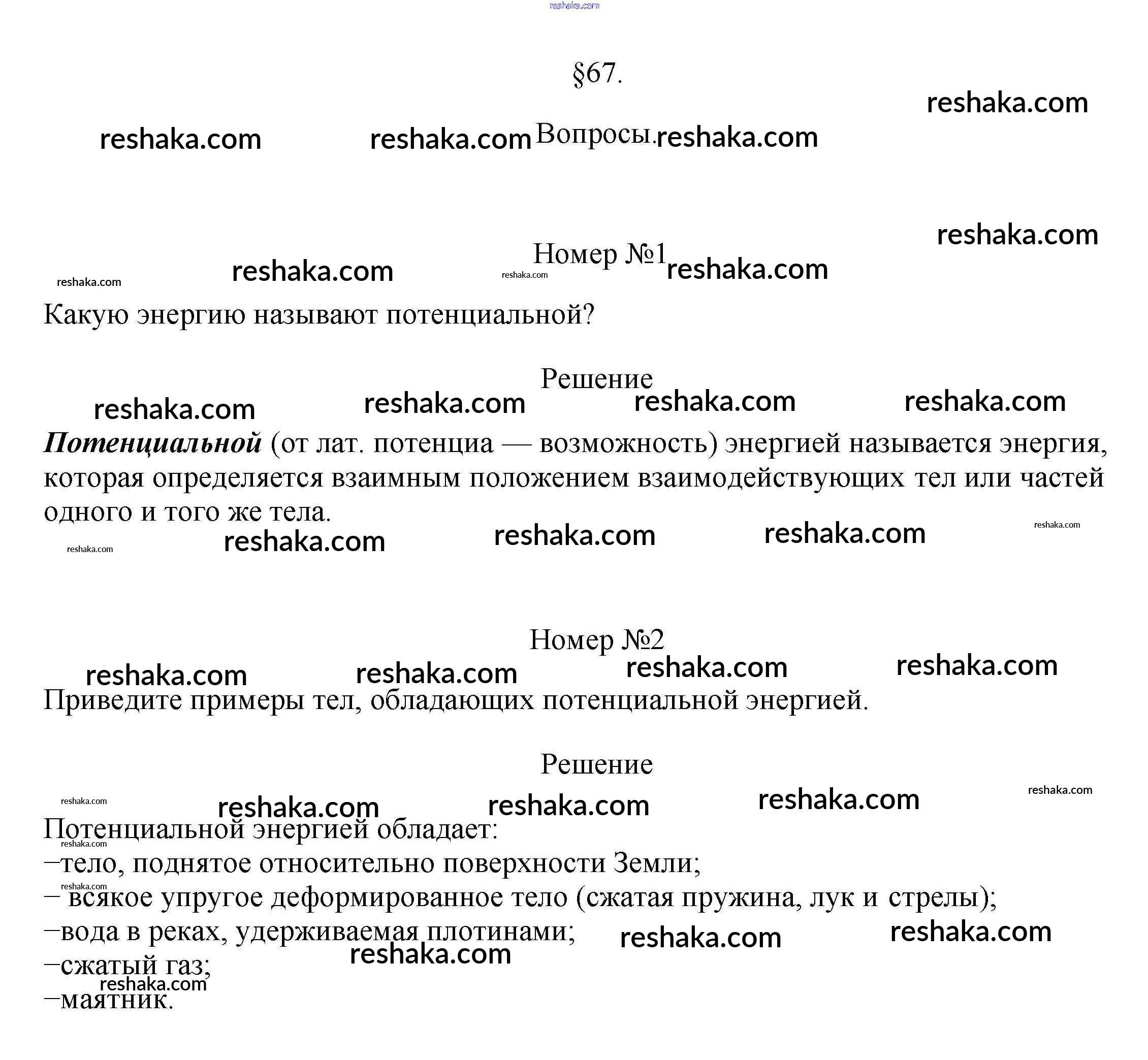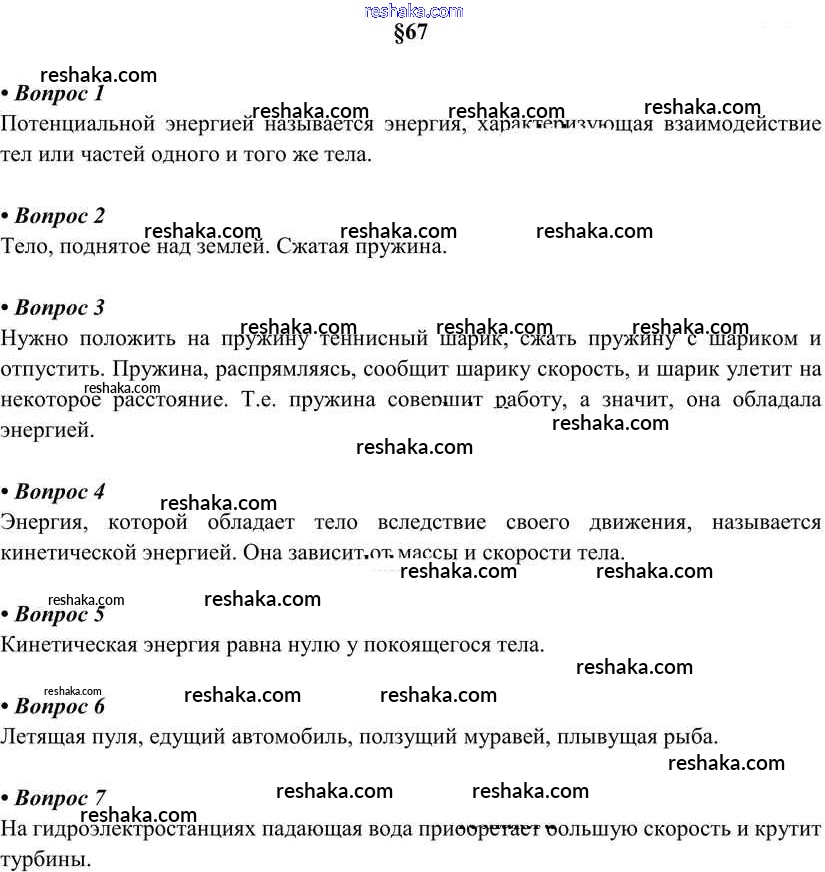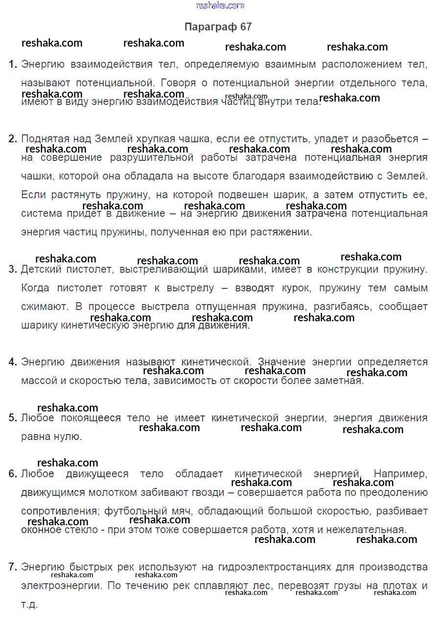 Решака - онлайн ответы Физика Перышкин за 7 класс Учебник ФГОС 2016 - §67