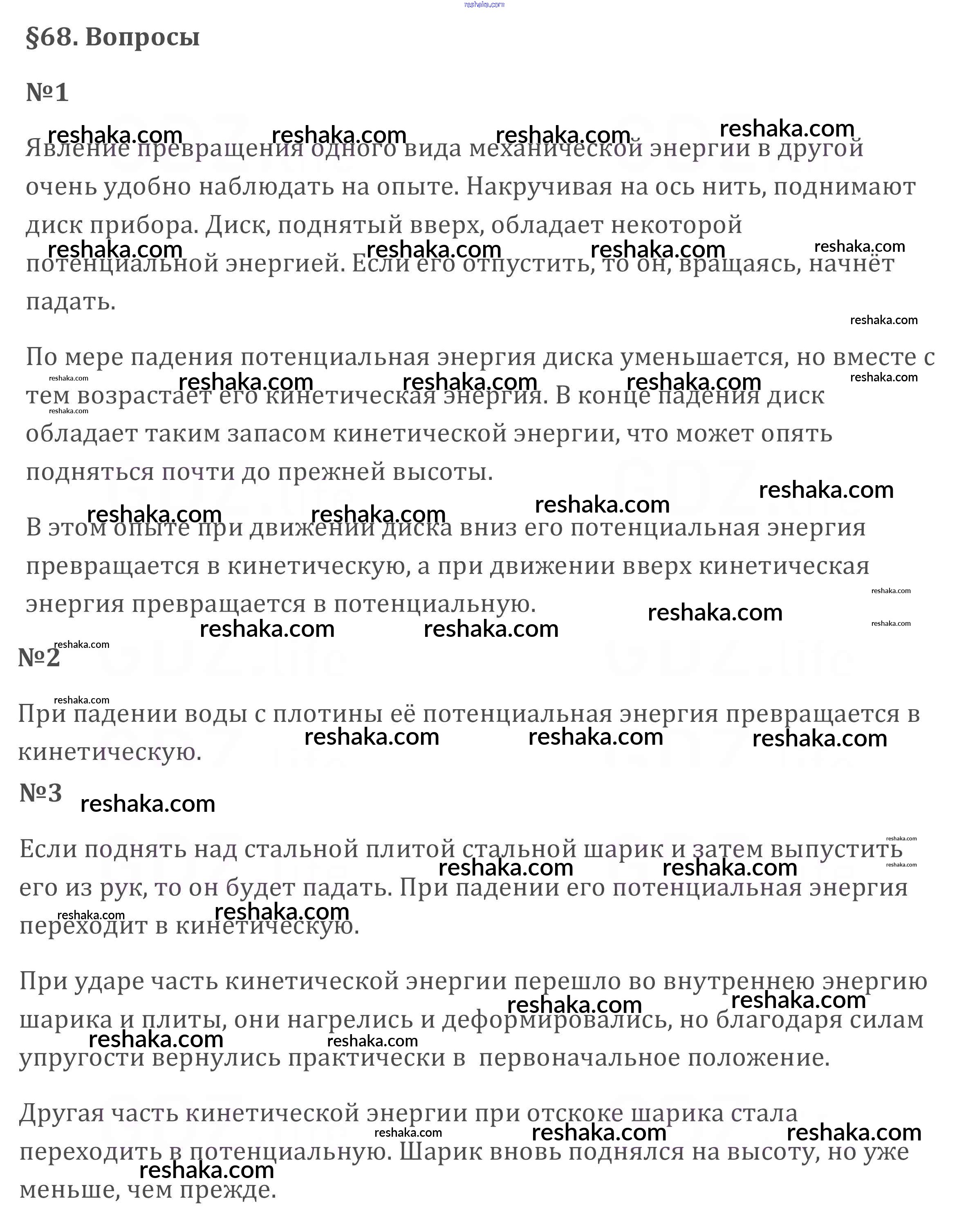 Решака - онлайн ответы Физика Перышкин за 7 класс Учебник ФГОС 2016 - §68