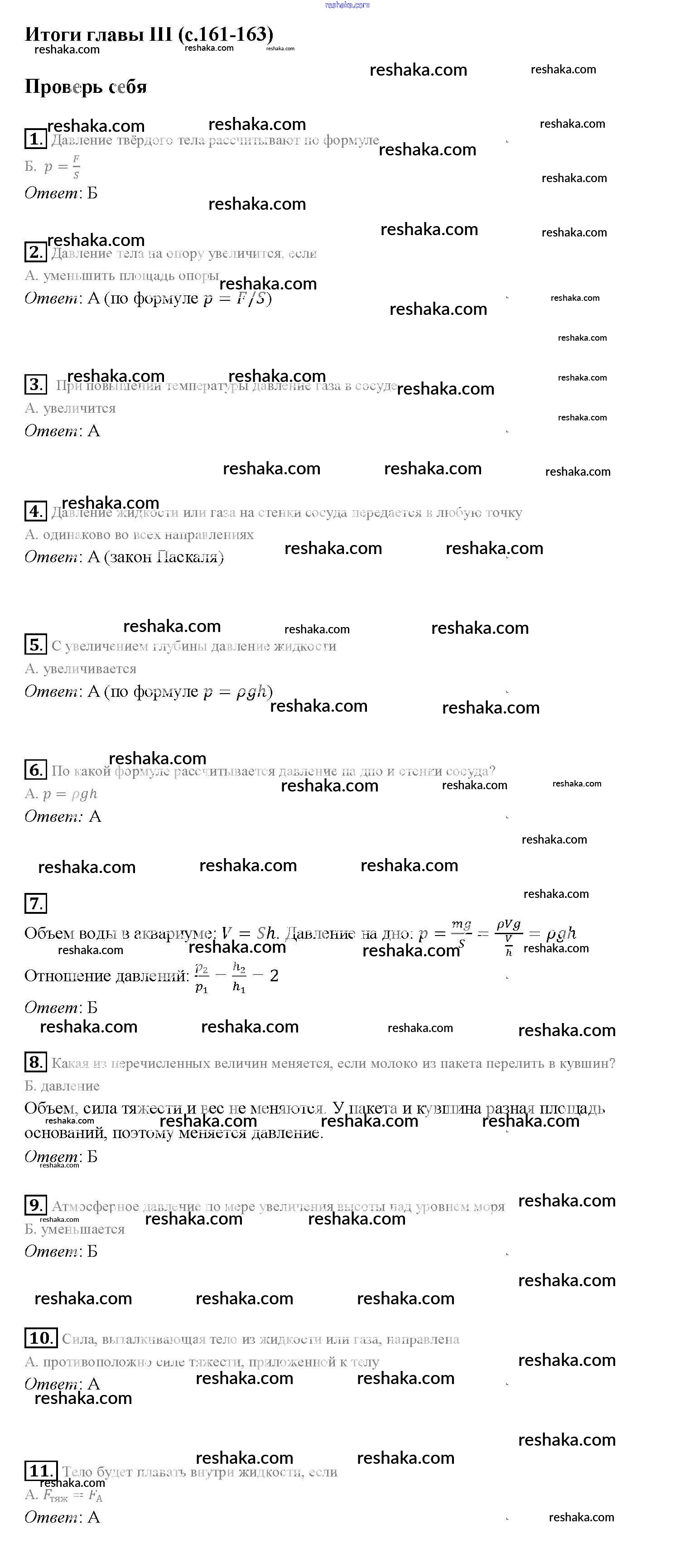 Решака - онлайн ответы Физика Перышкин за 7 класс Учебник ФГОС 2016 - Глава 3