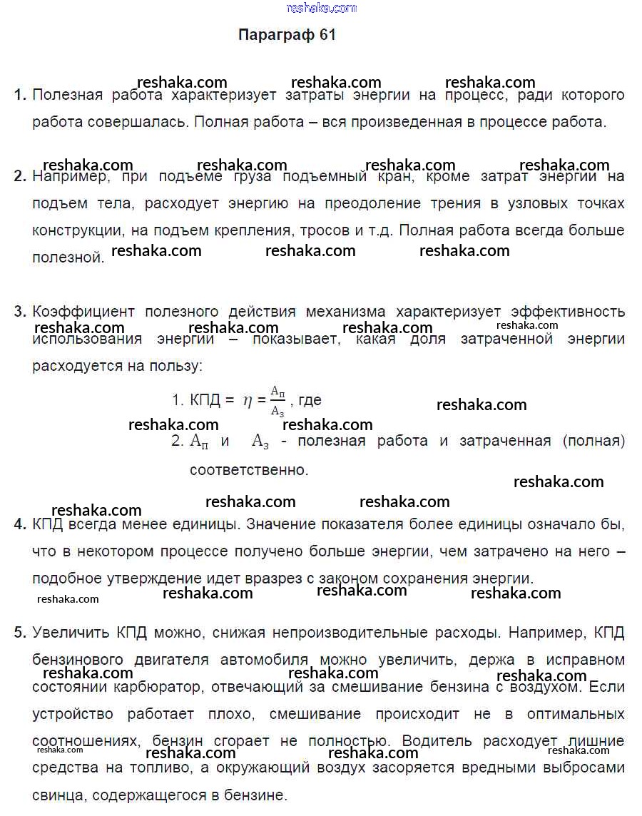 Решака - онлайн ответы Физика Перышкин за 7 класс Учебник ФГОС 2016 - §61