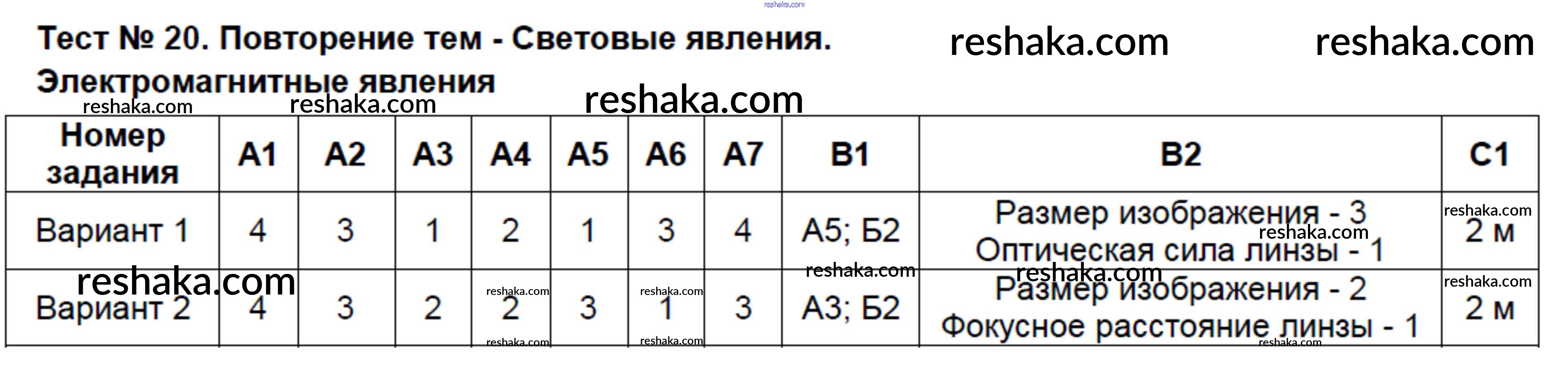 Решака - онлайн ответы Физика Бобошина за 8 класс Контрольно-измерительные материалы (КИМ) ФГОС 2014 - Тест-20. Повторение тем - Световые явления. Электромагнитные явления