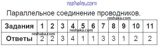Решака - онлайн ответы Физика Чеботарева за 8 класс Тесты ФГОС 2017 - 10. Параллельное соединение проводников