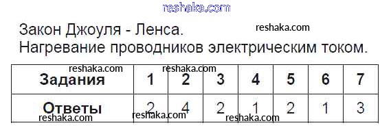 Решака - онлайн ответы Физика Чеботарева за 8 класс Тесты ФГОС 2017 - 13. Закон Джоуля-Ленса