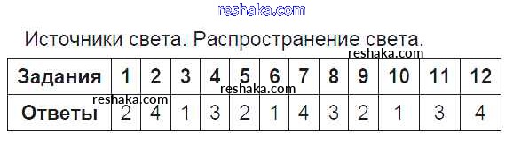 Решака - онлайн ответы Физика Чеботарева за 8 класс Тесты ФГОС 2017 - 1. Источники света. Распространение света