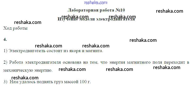Решака - онлайн ответы Физика Громов, Родина за 8 класс Учебник ФГОС 2018 - ЛР №10. Изучение модели электродвигателя